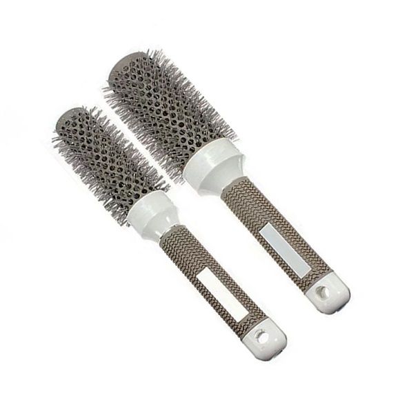 Удобная прорезиненная ручка оснащена с рефленой поверхностью, что предотвращает скольжение расчески в руке. Цельная ручка без кольца предотвращает зацепление волос. Сквозные отверстия в керамическом корпусе щётки продуваются горячим воздухом фена и обеспечивают быстрое высыхание волос и прочность завитка. Обладает антистатическим эффектом.