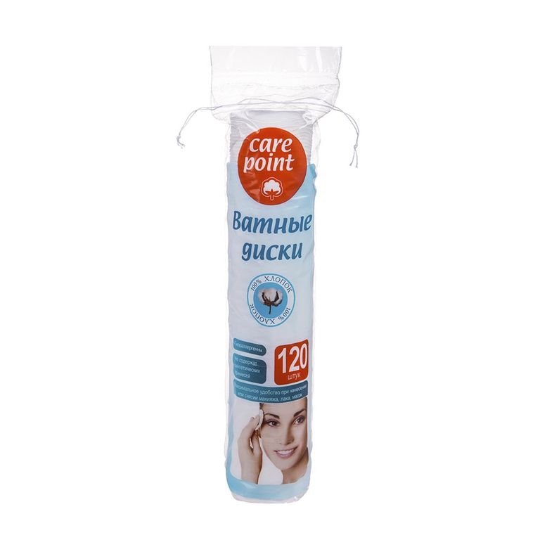 Ватные диски Care Point, 120 шт/уп 120 руб. В корзину не содержат примесей синтетики обладают повышенной плотностью отлично впитывают влагу не оставляют ворсинок благодаря технологии "полировка водой" не расслаиваются комфортны для кожи не содержат примесей синтетики обладают повышенной плотностью отлично впитывают влагу не оставляют ворсинок благодаря технологии "полировка водой" не расслаиваются комфортны для кожи