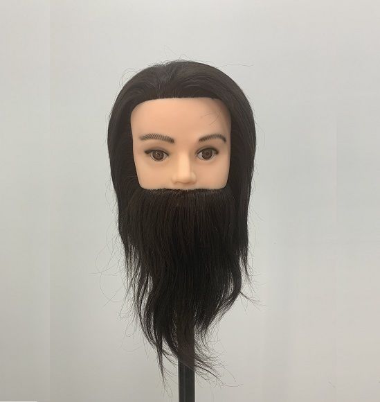 Учебная голова для парикмахеров со 100% натуральными волосами. С данным манекеном вы сможете усовершенствовать свой навык мужской стрижки и укладки коротких волос, а также научитесь управляться с бородой.