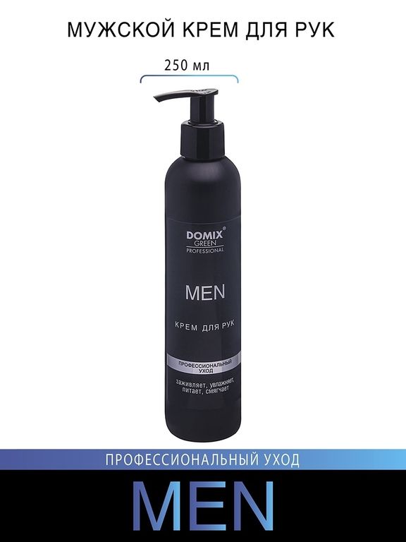 Кожа на руках мужчин обладает своими особенностями: она плотнее, более склонна к образованию мозолей на ладонях и заусенцев вокруг ногтей. В креме "MEN" от DOMIX GREEN PROFESSIONAL особым образом подобран комплекс экстрактов и натуральных масел, который увлажняет и смягчает мозоли и обветренную, пересушенную кожу. Спортсменам, тем, кто занимается физическим трудом, крем поможет избавиться от мозолей и заусенцев. Тем мужчинам, кто большую часть времени проводит в офисе, крем также рекомендован для того, чтобы руки выглядели ещё более ухоженными.