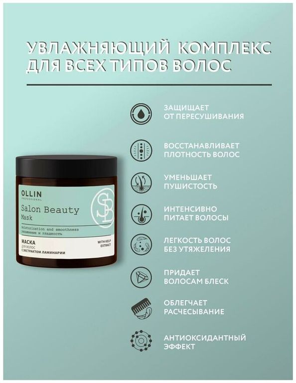 Маска интенсивно увлажняет и восстанавливает прочность поврежденных волос, защищая их от пересушивания. Экстракт ламинарии насыщает волосы и кожу головы полезными микроэлементами и необходимой влагой, придает прядям естественную гладкость без потери объема. Натуральный состав деликатно ухаживает за волосами, облегчая расчесывание и дальнейшую укладку.
